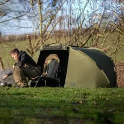 Los pescadores móviles ávidos como Mark Hofman, Kevin Diederen y Arjan Braad ya han estado usando este bivvy durante años y lo han estado usando en su industria pesquera durante años, por lo que lo verá regularmente en sus videos y por una buena razón. El tejido Aquatexx es extremadamente duradero, impermeable y oscuro. El bivvy se instala en menos de un minuto y cabe en cualquier lugar.