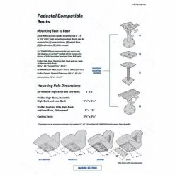 - Fácil instalación; acepta cualquier pedestal o sistema de montaje de asiento de barco de 5 ¼” x 5 ¼”
