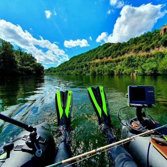 El bagre de un vientre flotante es cada vez más popular y es por eso que MADCAT® ha ideado un vientre de bagre especial: el tubo sin cámara MADCAT® Bellyboat de 170 cm. Al desarrollar esta nave, la gente detrás de MADCAT® prestó especial atención a la fuerza, la seguridad y la estabilidad. Por eso el MADCAT® Bellyboat está fabricado en PVC de 0,70 y 0,90 milímetros de espesor. También tiene una correa ancha y protectora en los costados. El color verde MADCAT® altamente visible asegura que el resto del tráfico de barcos notará al pescador en el agua. Para un control máximo sobre el barco y los peces, la barcaza es 1,7 metros más larga que la mayoría de las barcas del mercado. Lo que también hace que este barco de vientre sea más adecuado para la pesca del bagre es el asiento inflable alto, que facilita que el pescador llegue al agua con su clon. Este es el último y pesado barco de barriga de bagre. Viene con un kit de reparación, bomba de pie y estuche de transporte.