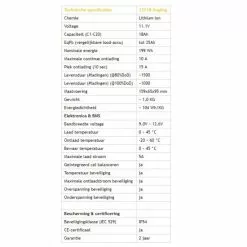 - Alta facilidad de uso: carga ligera y compacta, rápida e intermedia (completa en 4-5 horas), protección contra abuso incorporada por BMS. Funciona con la mayoría de los convertidores AC-DC.