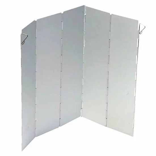 Un parabrisas de cocina universal totalmente plegable. Este parabrisas de cocina se puede utilizar en combinación con una estufa de camping o un quemador de gas. Esta pantalla antiviento para cocinar de 5 piezas se coloca alrededor de los quemadores o alrededor del quemador. Esto evita que la llama se apague y el calor de la llama se transfiere a la sartén con mayor eficacia. Después de su uso, el parabrisas se puede almacenar de forma fácil y compacta.