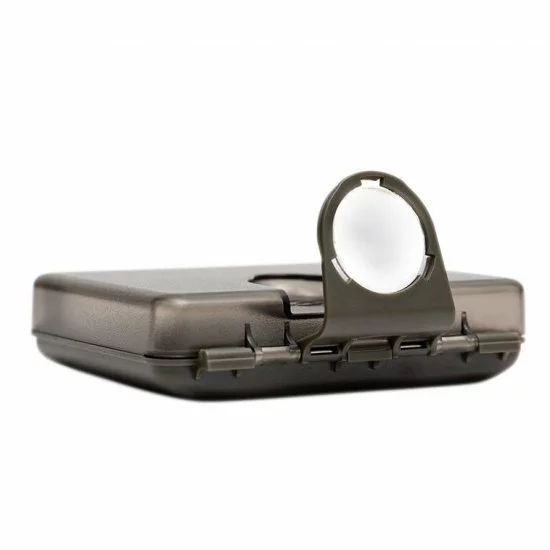 El Hook Safe en sí está hecho de plástico duro resistente a los impactos, con un cierre magnético para garantizar que no se abra durante el transporte, pero es muy fácil de abrir y cerrar cuando sea necesario. La tapa tiene una lente de aumento abatible incorporada, que se puede usar para verificar los puntos de enganche y se mantiene en su lugar mediante un cierre magnético cuando no se usa.