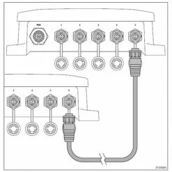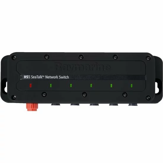 Los datos de SeaTalk se comparten rápidamente con otros equipos SeaTalk a través del conmutador HS5. Los datos de cartografía, radar y sonda se comparten a través de la red SeaTalk con pantallas compatibles. Los sistemas con más de 5 dispositivos SeaTalkhs requieren más de un conmutador de red. Los conmutadores de red se pueden vincular fácilmente según el principio de conexión en cadena. Para este propósito, el conmutador HS5 tiene un puerto especial de alta velocidad (1 Gbit/s) para conectarse a un segundo conmutador. Esto preserva todo el ancho de banda de datos en el sistema. Cada conmutador tiene un puerto de alta velocidad (puerto 5), por lo que un máximo de dos HS-5 pueden usar la conexión de 1 GBit/seg. Cualquier HS-5 posterior se puede conectar a través del puerto estándar (100 MBit/seg). Nota: Se pueden conectar un máximo de 25 dispositivos SeaTalkhs en un sistema.