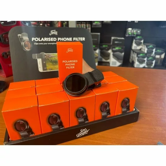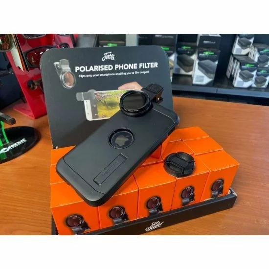 El clip de filtro para teléfono polarizado Fortis utiliza nuestro color de lente polarizado característico para ayudar a capturar y mejorar la calidad de su fotografía y videografía. Vital para todos los pescadores que buscan ubicar sus objetivos y capturar esos momentos, ya sea para filmar peces en el borde o usar el filtro para eliminar el resplandor de esas capturas de fotos.