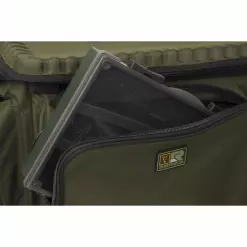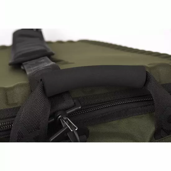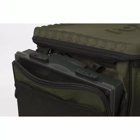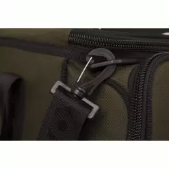 Nuevo material de poliéster tratado de 400 denier, resistente y resistente al agua Las robustas cremalleras dobles de 10 mm garantizan una fiabilidad total Fondo y tapa moldeados Perfecto para el almacenamiento de numerosos artículos de aparejos 2 bolsillos laterales externos para el almacenamiento de artículos esenciales 1 bolsillo externo central para el almacenamiento de la caja de aparejos Asas de EVA reforzadas Bandolera desmontable y acolchada Material exterior 100% Poliéster, Relleno 100% Polietileno, Forro 100% Poliéster, Fondo 100% Etileno Vinil Acetato Copo (EVA) Dimensiones: 60cm x 38cm x 44cm.