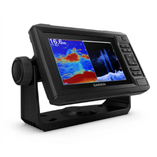 El plotter con pantalla táctil de 6″ legible a la luz del sol cuenta con un soporte de montaje de liberación rápida y un haz de transductor con sonda de exploración UHD y sonda CHIRP tradicional.