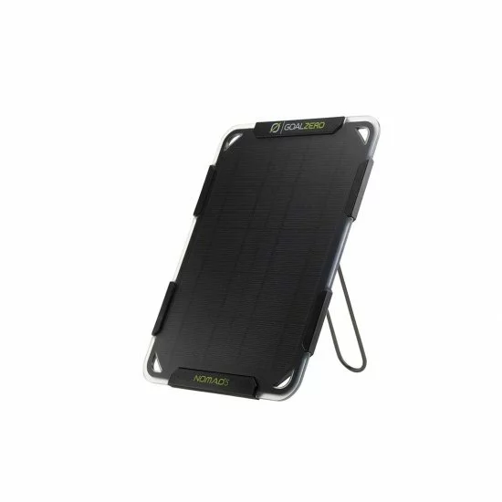 El Nomad 5, una solución liviana para obtener energía del sol mientras viaja, cuenta con 5 vatios monocristalinos en una carcasa resistente con un soporte fácil de usar y salida USB.