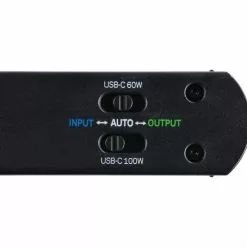 - Incluye interruptor para asignar modos de entrada, salida y automático a los puertos USB-C.