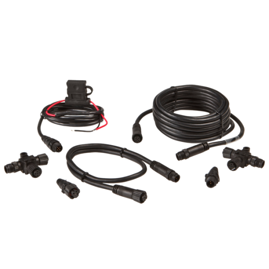 El kit de inicio NMEA 2000 incluye todo lo necesario para configurar una red NMEA 2000, incluido un cable de red, 3 metros de cable NMEA 2000, conectores en T (2) y terminadores de red (2).