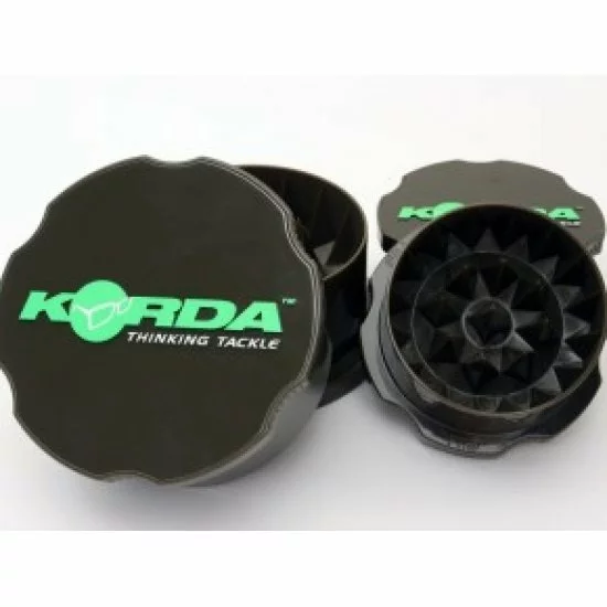 Atrás quedaron los días de moler boilies de harina de pescado con olor fuerte en un procesador de alimentos. Ahora está el Krusha. Varios productos han aparecido en el mercado para moler el cebo, pero ninguno de ellos podría cumplir con los rigores de la pesca de la carpa de hoy. Las cuchillas a menudo se doblaban, se rompían o se desafilaban rápidamente, por lo que tomó horas preparar 1 kg de boilies, y mucho menos chufas o gránulos. El pensamiento de Korda es simple, como siempre. Producir un dispositivo que muele todo en segundos, boilies duros, pellets, chufas, etc. Bueno, aquí está el resultado, el Krusha. Gracias a su diseño fuerte y robusto, la Krusha hinca el diente en todo lo que necesita ser molido. Acabado en color verde oliva y disponible en dos tamaños diferentes. Complete la parte del Krusha que dice ‘rellenar’. Coloque la tapa y gire las piezas entre sí. Cuanto más a menudo haga esto, más fina será la comida triturada al final. Moler pellets en polvo ya no es una utopía. Ahora puedes usar cualquier cebo que quieras en tu Stick Mix. Los boilies triturados también se pueden usar para esto. ¡Verdaderamente ideales!