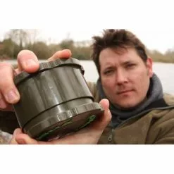 Atrás quedaron los días de moler boilies de harina de pescado con olor fuerte en un procesador de alimentos. Ahora está el Krusha. Varios productos han aparecido en el mercado para moler el cebo, pero ninguno de ellos podría cumplir con los rigores de la pesca de la carpa de hoy. Las cuchillas a menudo se doblaban, se rompían o se desafilaban rápidamente, por lo que tomó horas preparar 1 kg de boilies, y mucho menos chufas o gránulos. El pensamiento de Korda es simple, como siempre. Producir un dispositivo que muele todo en segundos, boilies duros, pellets, chufas, etc. Bueno, aquí está el resultado, el Krusha. Gracias a su diseño fuerte y robusto, la Krusha hinca el diente en todo lo que necesita ser molido. Acabado en color verde oliva y disponible en dos tamaños diferentes. Complete la parte del Krusha que dice ‘rellenar’. Coloque la tapa y gire las piezas entre sí. Cuanto más a menudo haga esto, más fina será la comida triturada al final. Moler pellets en polvo ya no es una utopía. Ahora puedes usar cualquier cebo que quieras en tu Stick Mix. Los boilies triturados también se pueden usar para esto. ¡Verdaderamente ideales!