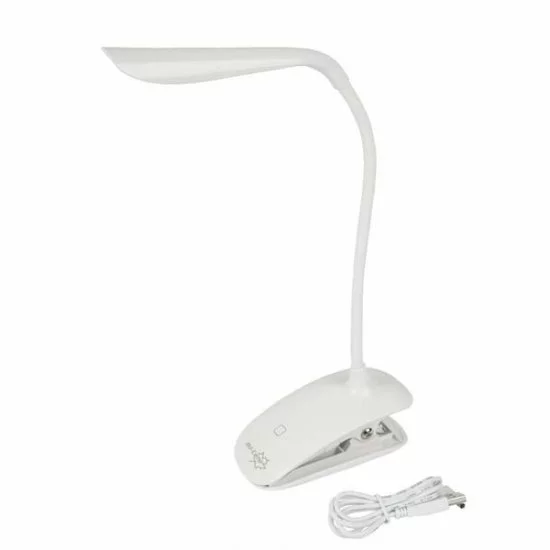 Una bombilla recargable. Esta lámpara se puede acoplar fácilmente mediante una abrazadera. Esta lámpara se puede montar en el borde de una mesa, en una silla, en el poste de una tienda de campaña, etc. (máximo Ø 5,5 cm) La lámpara también se puede colocar sin usar la abrazadera. Debido a la flexibilidad de la lámpara, se puede doblar en cualquier posición deseada. Regulable en 3 modos de luz y se puede cargar mediante el cable USB suministrado. Tiempo de combustión: 20-10 horas. Salida de luz: 20-55 lúmenes.