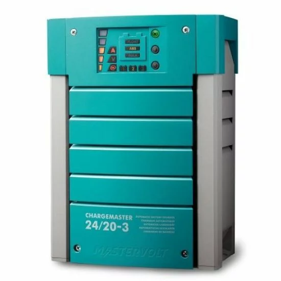 Saca el máximo partido a tus baterías con la serie ChargeMaster. Después de todo, puedes enchufarlo y cargarlo en cualquier parte del mundo. Tiene la seguridad de que sus baterías siempre se cargan rápida y completamente. Gracias a la característica de carga de 3 etapas+ de Mastervolt, sus baterías también funcionarán mejor y durarán más. Todos los ChargeMaster se pueden conectar dentro de una red MasterBus con un cable, una conexión y una operación (a excepción de ChargeMaster 12/10, ChargeMaster 12/15-2 y ChargeMaster 24/6). Además de ser muy fácil de instalar, también puede monitorear, configurar y operar su sistema de forma centralizada, local o remota. Pantalla clara. Una pantalla brillantemente iluminada en el ChargeMaster muestra toda la información esencial: corriente de carga, voltaje de carga, fase de carga y medición del contenido de la batería o medición del estado de la batería en % de la capacidad Ah disponible. En la pantalla encontrará, entre otras cosas, una indicación de comunicación MasterBus. Todo el sistema es fácil de operar con los tres botones al lado del panel de visualización. El ChargeMaster está disponible en varias versiones. Así siempre encontrará el cargador de batería que mejor se adapte a su situación y deseos. Carga de batería a cualquier voltaje. El Mastervolt ChargeMaster ofrece la máxima potencia de salida gracias al rango automático. El rango automático garantiza un funcionamiento totalmente automático perfecto en cualquier parte del mundo, independientemente de la tensión de red (90-265 V CA, 50 o 60 Hz). El método de carga de 3 pasos+ también garantiza una carga rápida y completa. Y gracias al control cos phi 1, obtiene la misma corriente de carga con menos energía del generador. Conexiones sólidas de metal a metal, provistas de alivio de tensión, evitan la corrosión y/o el sobrecalentamiento. La serie ChargeMaster está equipada con 3 salidas de carga iguales. La entrada de los modelos pequeños de ChargeMaster ya está premontada con dos metros de cable, ¡así que realmente plug & play! Los modelos pesados están equipados con una salida completa (para su batería de usuario, por ejemplo) y con dos salidas de 10 A, óptimas para baterías de arranque. Incluso cuando las baterías no están conectadas, el ChargeMaster proporciona una salida de CC constante, por lo que puede encender las luces o mantener la nevera fría.