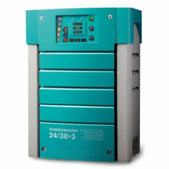 Saca el máximo partido a tus baterías con la serie ChargeMaster. Después de todo, puedes enchufarlo y cargarlo en cualquier parte del mundo. Tiene la seguridad de que sus baterías siempre se cargan rápida y completamente. Gracias a la característica de carga de 3 etapas+ de Mastervolt, sus baterías también funcionarán mejor y durarán más. Todos los ChargeMaster se pueden conectar dentro de una red MasterBus con un cable, una conexión y una operación (a excepción de ChargeMaster 12/10, ChargeMaster 12/15-2 y ChargeMaster 24/6). Además de ser muy fácil de instalar, también puede monitorear, configurar y operar su sistema de forma centralizada, local o remota. Pantalla clara. Una pantalla brillantemente iluminada en el ChargeMaster muestra toda la información esencial: corriente de carga, voltaje de carga, fase de carga y medición del contenido de la batería o medición del estado de la batería en % de la capacidad Ah disponible. En la pantalla encontrará, entre otras cosas, una indicación de comunicación MasterBus. Todo el sistema es fácil de operar con los tres botones al lado del panel de visualización. El ChargeMaster está disponible en varias versiones. Así siempre encontrará el cargador de batería que mejor se adapte a su situación y deseos. Carga de batería a cualquier voltaje. El Mastervolt ChargeMaster ofrece la máxima potencia de salida gracias al rango automático. El rango automático garantiza un funcionamiento totalmente automático perfecto en cualquier parte del mundo, independientemente de la tensión de red (90-265 V CA, 50 o 60 Hz). El método de carga de 3 pasos+ también garantiza una carga rápida y completa. Y gracias al control cos phi 1, obtiene la misma corriente de carga con menos energía del generador. Conexiones sólidas de metal a metal, provistas de alivio de tensión, evitan la corrosión y/o el sobrecalentamiento. La serie ChargeMaster está equipada con 3 salidas de carga iguales. La entrada de los modelos pequeños de ChargeMaster ya está premontada con dos metros de cable, ¡así que realmente plug & play! Los modelos pesados están equipados con una salida completa (para su batería de usuario, por ejemplo) y con dos salidas de 10 A, óptimas para baterías de arranque. Incluso cuando las baterías no están conectadas, el ChargeMaster proporciona una salida de CC constante, por lo que puede encender las luces o mantener la nevera fría.