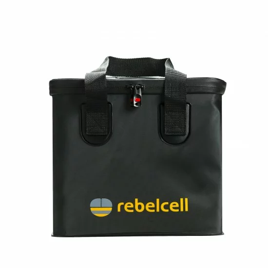 Maletín de transporte de batería Rebelcell fabricado en EVA y equipado con cremalleras resistentes y asas fuertes. Compatible con: batería de iones de litio 12V100, 12V140 AV y 24V50.