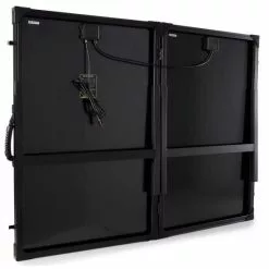 - 200 vatios en total: dos paneles de 100 vatios (18-22 V) unidos entre sí y conectados con una bisagra.