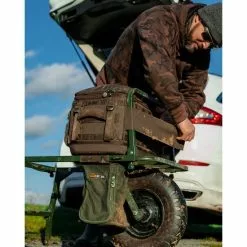 No solo puede guardar accesorios en la bolsa, sino que también puede adjuntar a la bolsa un tapete de desenganche enrollado, una silla para invitados de la serie R, una eslinga STR o una funda para barra Explorer.