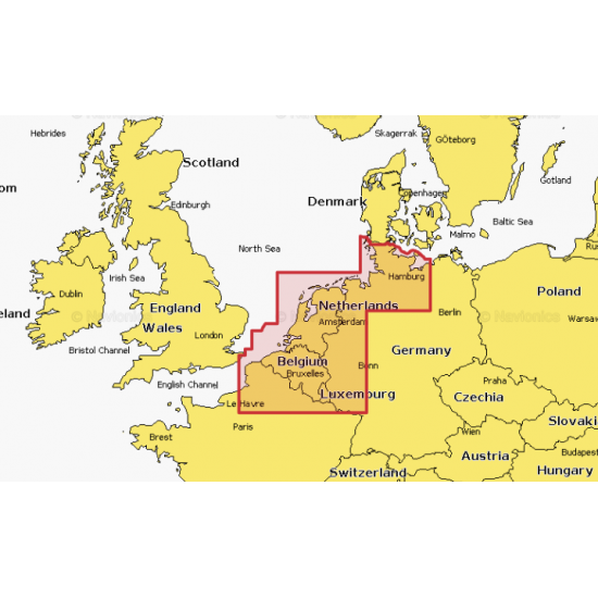 La carta de navegación de Navionics de Benelux y Alemania, Oeste es imprescindible para patrones y pescadores a los que les gusta navegar en estas áreas. Este mapa de agua preprogramado tiene una cobertura detallada de las costas del Mar del Norte de Bélgica, los Países Bajos y Alemania, incluidas las vías navegables interiores y los canales de los países del Benelux y la costa del Mar Báltico desde Alemania hasta Wismar.