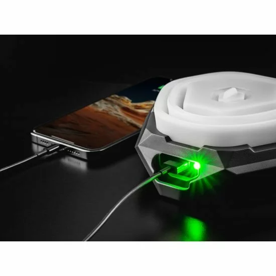 La Nebo Galileo Air es una linterna ligera, plegable y recargable. Con su construcción plegable única, Air es el compañero ideal para cualquier aventura al aire libre. Cabe fácilmente en cualquier bolso, pero se puede desplegar con un solo movimiento. La lámpara está equipada con LED blancos y rojos que proporcionan una salida de hasta 1000 lúmenes. Esta linterna no solo ilumina la tienda, sino que también puede cargar sus dispositivos móviles. La base de la linterna tiene un puerto USB integrado para cargar dispositivos como un teléfono inteligente o una cámara. Doblemente útil cuando no se ve un enchufe por ninguna parte. Colgar la linterna es muy fácil gracias al asa plegable única en la parte inferior de la lámpara. La lámpara es a prueba de salpicaduras IPX4 y viene con un cable micro USB.