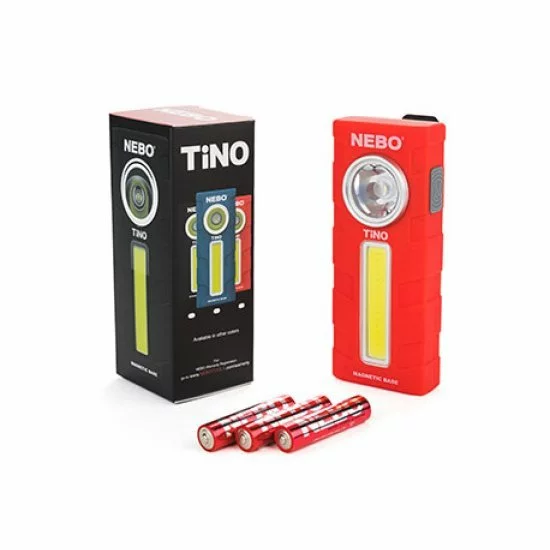 La Nebo Tino es una práctica luz de trabajo LED con muchos extras. El Tino tiene un foco LED de 300 lúmenes y un LED COB de acero de 225 lúmenes de ancho. ambos regulables. La lámpara tiene un imán en la parte trasera y un clip/gancho para colgar. Ambos haces de luz se pueden programar y almacenar en la intensidad deseada.
