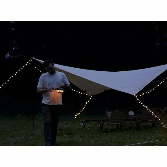 La Olight Haloop es una linterna colgante recargable con una hermosa luz suave de 360° de estilo clásico pero con las técnicas más modernas. Ideal para acampar, ir de mochilero o simplemente en su propio patio trasero. La linterna de diseño único se puede colgar de varias maneras. Toda la linterna se abre con bisagras para que se pueda colgar alrededor de un tubo o poste, un mecanismo de autosujeción mantiene el Haloop en su lugar (adecuado para tubos con un diámetro de entre 2,45 cm y 5,5 cm). Además, el Haloop se suministra con un adaptador para que la linterna también se pueda colgar en una superficie irregular con correas. En la parte superior de la lámpara hay un asa en dos partes, en la que se puede transportar y colgar la lámpara.