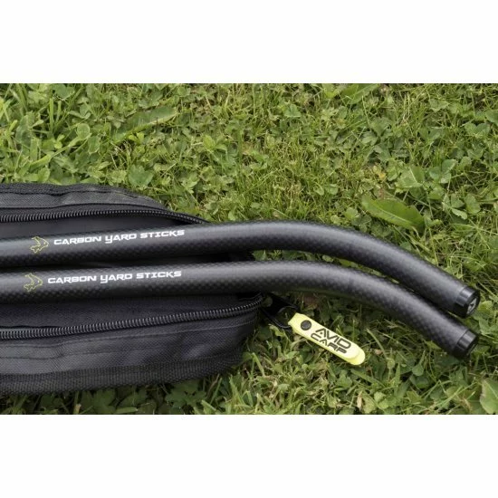Avid Carp Carbon Yard Sticks, una versión de fibra de carbono de nuestros extremadamente populares Yard Sticks. Estos palos suaves y livianos vienen con un cable negro de 3,60 m que les permite instalarse rápidamente a lo largo del banco.