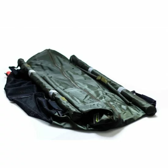 Nuevo en Pro Line el cabestrillo flotante Xtreme. Esta eslinga de retención está equipada con un paño especial de “malla” suave, que proporciona la protección perfecta para los peces. Los flotadores permiten que el pez se cuelgue de forma segura en la eslinga de retención durante un corto período de tiempo. Esto le da la oportunidad de preparar su material fotográfico y de película sin que los peces sufran como resultado. El cabestrillo flotante Pro Line Xtreme está equipado con reflectores y un mini marcador para que este cabestrillo también sea claramente visible en la oscuridad. Gracias al práctico bolsillo lateral, el cable, incluido el anillo de acero inoxidable y el tornillo, se puede guardar fácilmente. El Xtreme Floating Weightsling se puede atornillar fácilmente en un bankstick por medio del tornillo. Dos barras separadoras ajustables están unidas en la parte superior, de modo que cada tamaño de carpa tenga suficiente espacio en esta eslinga de retención.