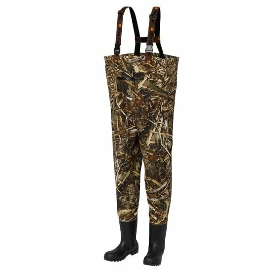 Ahora disponible en Team Outdoors el pie de bota Prologic Max5 Taslan Chest Wader. El Chest Wader está hecho de material de PVC de calidad duradera. El Chest Wader tiene un tirante estilo H ajustable para que pueda obtener el ajuste deseado. En la parte delantera hay un bolsillo frontal resistente al agua con cremallera. Práctico para almacenar materiales pequeños. También puede sentarse fácilmente sobre sus rodillas porque hay rodilleras en el interior. Esto lo hace mucho más cómodo. El juego de adhesivos está incluido y en la parte inferior del Chest Wader hay botas de PVC totalmente forradas de neopreno.