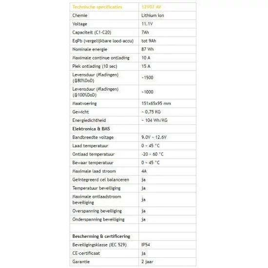 Esta batería tiene el mismo tamaño que una batería de plomo-ácido estándar de 9A, una capacidad de 87Wh con un peso inferior a los 750 gramos . En definitiva, la 12V07 AV es la hermana ‘pequeña’ de la popular batería de iones de litio 12V18, pero con una capacidad de 87 Wh. La batería se ha desarrollado especialmente para su uso con sondas de profundidad más pequeñas (4-5 pulgadas) como Raymarine Dragonfly 4, 5 o Axiom, Humminbird Helix 5 y Lowrance Elite 5. Una ventaja adicional es que esta batería cumple con las normas IATA . y bajo ciertas condiciones en el equipaje de mano se puede llevar en el avión . Práctico para los pescadores que viajan.