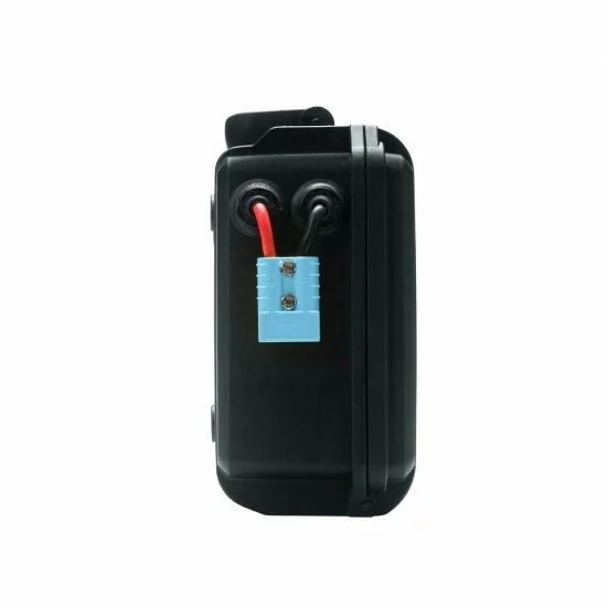 Caja exterior robusta, ligera e impermeable (IP65) (12V35 Ah – 432 Wh), fabricada en NL. Especialmente desarrollado como fuente de alimentación portátil para uso en exteriores (medidor de profundidad, motor eléctrico de hasta 45 libras, suministro de energía para exteriores).