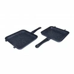 Connect Pan & Griddle XXL Granite Edition cuenta con manijas desmontables frías al tacto y un sistema de bisagra desmontable que convierte una sartén en dos: una de fondo plano y una parrilla separada. Connect Pan & Griddle XXL también viene con un rallador de queso y una gran espátula Q-Lock. El set es ideal para tortillas grandes, pizzas, pasta, tortillas, desayunos, etc., pero también perfecto para cocinar para varias personas. Nuestro nuevo revestimiento estilo granito hace que nuestras sartenes sean más fuertes, más duraderas y ofrece propiedades antiadherentes mejoradas, lo que lleva los utensilios de cocina compactos a un nivel completamente nuevo.