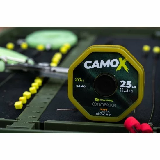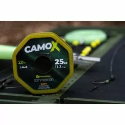 Material de longitud de gancho trenzado flexible con un revestimiento suave y extra铆ble. Perfecto para pescar sobre fondos fangosos o fondos con desechos org谩nicos, el recubrimiento suave permite que el aparejo caiga naturalmente mientras mantiene buenas propiedades anti-enredos. Excelente resistencia a la abrasi贸n y acabado de “baja visibilidad”. Disponible en Camo en 25 lb / 11,3 kg y 35 lb / 15,9 kg de resistencia a la rotura. 20 m por bobina.