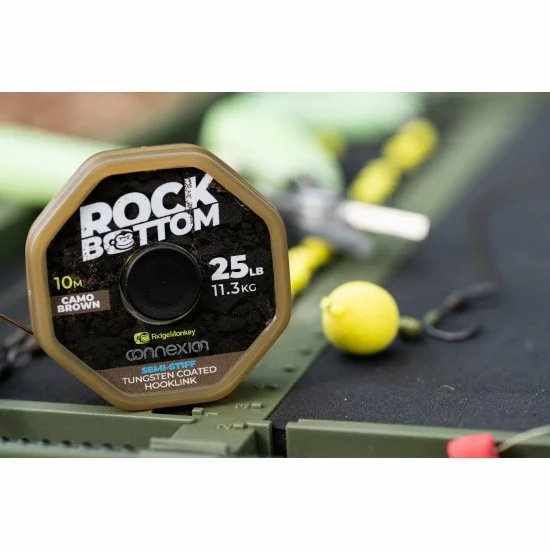 Con un núcleo trenzado fuerte y resistente y un revestimiento impregnado de tungsteno de alta resistencia, el eslabón de eslabón revestido de tungsteno Rock Bottom se estira sin necesidad de vapor, lo que hace que este material de eslabón de eslabón perfecto se preste a una amplia variedad de situaciones y presentaciones. Excelente resistencia a la abrasión y un acabado mate para que no destaque en la parte inferior. Utilice cebos pequeños y equilibrados para un rendimiento óptimo. Disponible con revestimiento Soft Coated o Semi-Stiff en Camo Green o Camo Brown, 10 m por bobina.