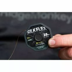 Material de longitud de gancho trenzado ultrafino. Súper flexible, la trenza suave SilkFlex es ideal para usar cuando se pesca con bolsas de PVA y una alternativa ideal para anzuelos cuando los peces ya lo han visto todo. Ideal para la parte suave de un equipo Combi tradicional para una flexibilidad óptima. Muy resistente a la abrasión y acabado en ‘low-vis’. Disponible en camuflaje con resistencia a la rotura de 25 libras.