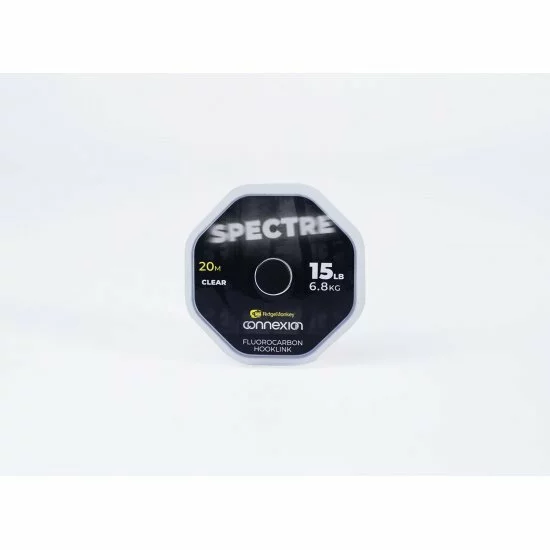 Visibilidad ultrabaja en el agua, 100 % material de eslabón de anzuelo/líder de fluorocarbono. Prácticamente invisible bajo el agua, la alta densidad del material del Spectre Fluorocarbon se adhiere al fondo como un imán y se puede utilizar para muchas aplicaciones diferentes. Producido originalmente como un material de longitud de anzuelo, también es perfecto como líder invisible para cazar peces muy tímidos. Disponible en fuerzas de ruptura de 15 lb y 20 lb.