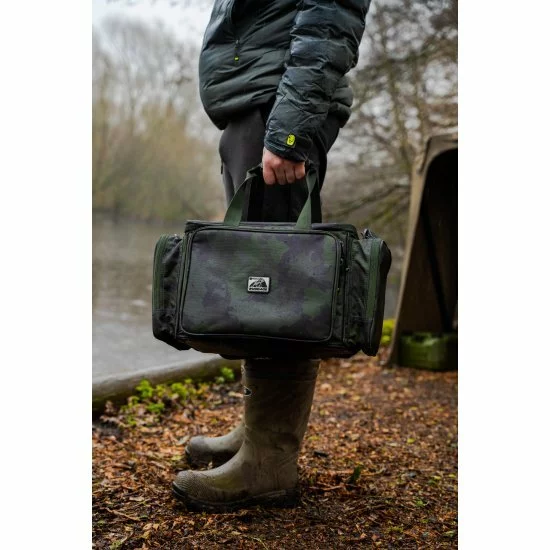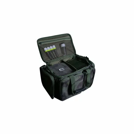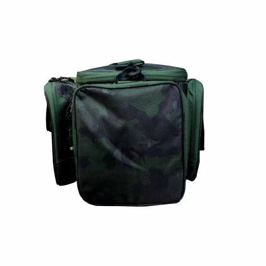 El Ruggage Small Carryall tiene una capacidad de 40 litros en el compartimento principal interno, que se puede dividir como se desee. El Carryall tiene cinco bolsillos externos dobles con cremallera, junto con bolsillos internos de malla con cremallera para artículos más pequeños.