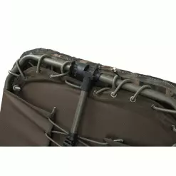 - Diseño de correa de tensión lateral (una correa en cada lado que se envuelve alrededor del marco en lugar de sobre el colchón) para plegar la silla de cama de manera mucho más compacta que las camas con una sola correa central