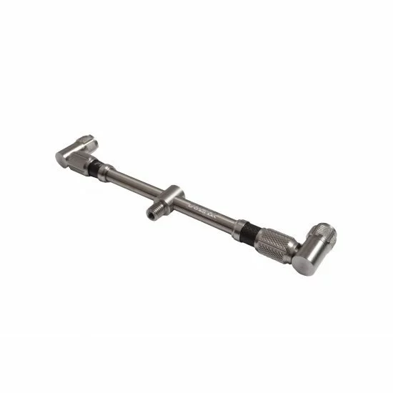 Barra de zumbador ajustable Solar P1 de 2 varillas con sistema de ajuste sin tornillos Taper-Loc para un ajuste fácil, rápido y estable del ancho de la barra de zumbador. Al igual que todas las otras barras de zumbido de la gama P1, estas barras de zumbido también cuentan con tuercas de ajuste de ajuste de agarre de diamante de 5 radios y, por supuesto, el Pozi-Loc ™ patentado para que sus alarmas de mordida estén siempre rectas y ajustadas. La rosca BSF de 3/8 es compatible con todos los Solar Banksticks y Buzz bars y también se adapta a la mayoría de los banksticks de otras marcas. La parte extensible de la barra del zumbador está aplanada para que no pueda girar. Disponible en 2 tamaños: