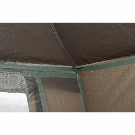 Una primicia en la industria en la forma de las nuevas hebillas Mag-Loc para enrollar los costados y Permavent en la parte posterior. Estas hebillas Mag-Loc también se pueden encontrar en el panel de relleno disponible por separado. El suelo resistente con cremallera y el panel completo de malla Mozzi con Mac-Loc también están disponibles por separado.