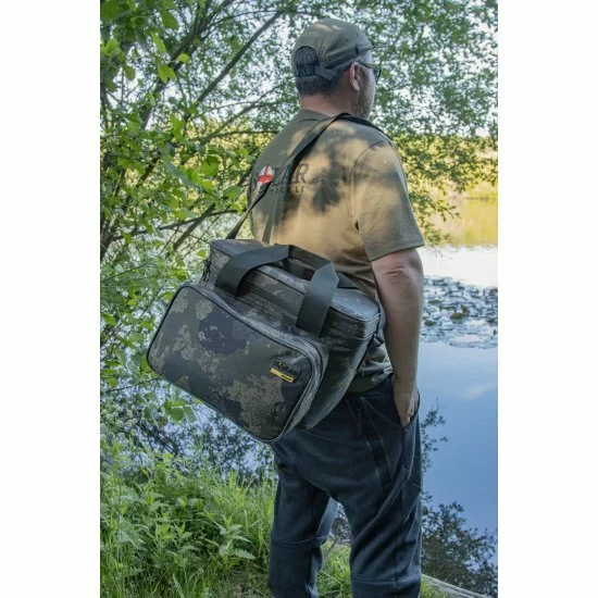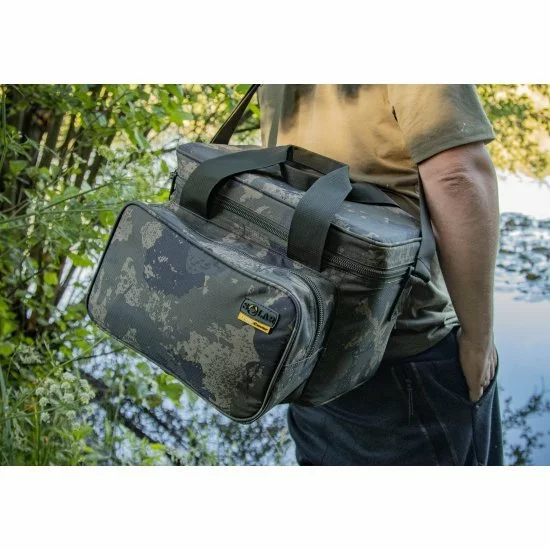 Una nueva incorporación a nuestra popular gama de equipaje UnderCover Camo. Repleto de características y fabricado con nuestro exclusivo tejido 600D UnderCover Camo, este bolso isotérmico bien aislado es ideal para esas condiciones cálidas y veraniegas. Equipado con un gran bolsillo frontal para bombonas de gas, cubiertos y utensilios de cocina, es el complemento ideal para la gama. Debido a la correa de hombro ajustable, las asas y el fondo reforzado, esta bolsa también se puede utilizar perfectamente para transportar cebos (cebos congelados o para pesca itinerante / flotante).