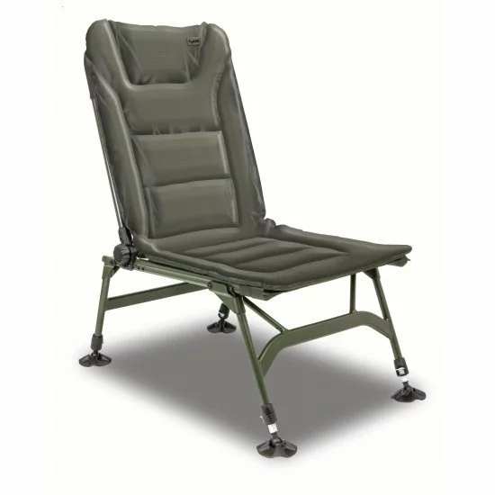 Cómodo sillón de sesión con respaldo regulable en múltiples posiciones hasta un ángulo de no menos de 180 grados. Colchón recubierto de PVC 600D totalmente forrado en un sutil verde oliva y equipado con el exclusivo soporte lumbar de Solar donde el colchón se incorpora al marco. Las cuatro patas son ajustables y están equipadas con un mecanismo de bloqueo, doblar las patas al mover la silla también es cosa del pasado. El marco está equipado con correas de velcro para asegurar las piernas durante el transporte.
