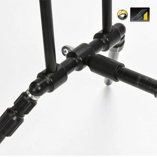 Gebruikmakend van Solar Tackle’s 31-jarige ervaring in Stainless bankware, staat de gloednieuwe A1 Range voor de next level in aluminium bankware. Naast dat deze range extreem licht in gewicht is en afgewerkt is in een subtiel zwarte afwerking zijn er geen plastic onderdelen gebruikt wat uiteraard de duurzaamheid niet ten goede komt. De A1 Range is geanodiseerd geanodiseerd en niet geverfd of poedercoated. Hierdoor zal het niet gaan bladderen waar diverse andere merken last van hebben. De A1 Pod is voorzien van Solar’s alom bekende goalpost bevestiging voor de buzzerbars en 4 verstelbare poten. De verstelbare main bar wordt aan beide goalposts bevestigd middels een uniek schroefsysteem waardoor je de pod op 2 manieren kunt vastzetten en een veelvoud van opstellingen kunt kiezen.