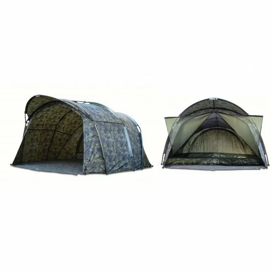 El vivac UnderCover Camo para 2 personas. Repleto de caracterĂsticas y funcionalidades, este espacioso bivvy de 3 costillas ofrece una increĂble relaciĂłn calidad-precio. Equipado con una ventana de malla muy grande en la parte delantera y trasera para un flujo de aire Ăłptimo en climas cálidos, que por supuesto se puede cerrar con mal tiempo. El frente se puede enrollar completamente para crear un frente completamente abierto y el toldo se puede quitar si lo desea. La atenciĂłn a los detalles garantiza caracterĂsticas pequeñas pero prácticas, como algunos compartimentos de almacenamiento y una cremallera en la parte posterior para un cable de alimentaciĂłn (ideal durante una estancia en un agua de pago con electricidad). Fabricado con material UnderCover Camo de 10.000 HH, tambiĂ©n disponible en versiĂłn verde. Suministrado con suelo resistente y cápsula interior de malla.