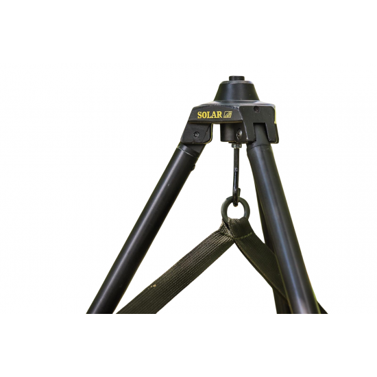 Trípode de pesaje anodizado negro con patas regulables de 1 a 1,80 metros. El gancho de pesaje grande y resistente puede transportar todos los tipos populares de básculas y toda la construcción sólida puede pesar no menos de 90 kg o más.
