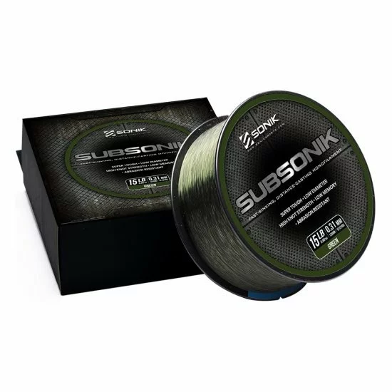 SubSonik es un monofilamento de alta tecnología súper suave diseñado para el pescador de carpa que exige lo mejor. Está formulado mediante un complejo proceso de extrusión que garantiza la máxima resistencia con un factor de estiramiento limitado y está diseñado para hundirse rápidamente, eliminando la detección.