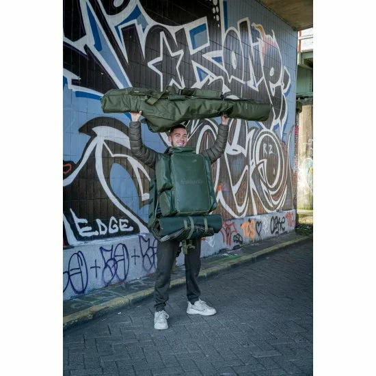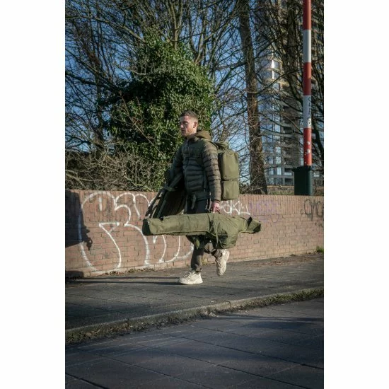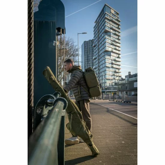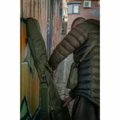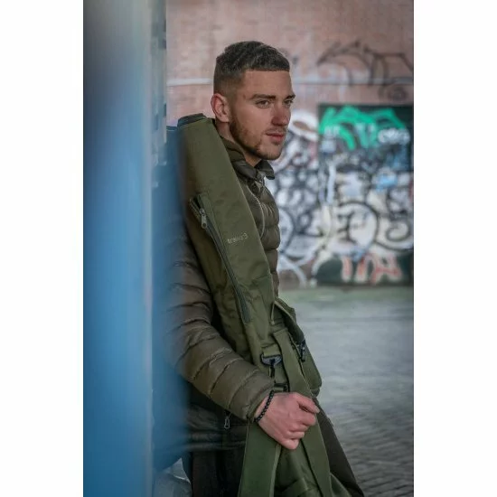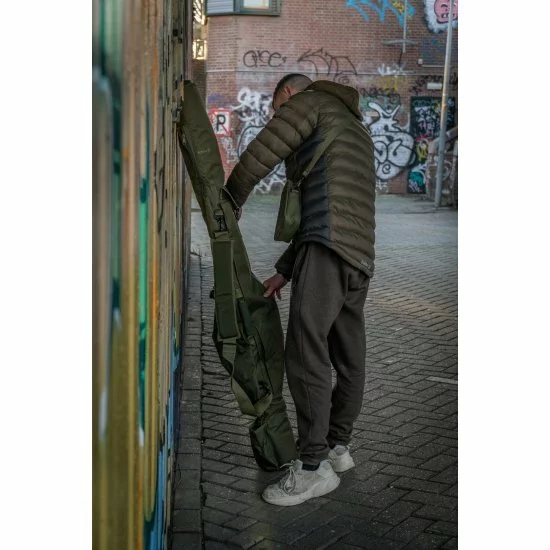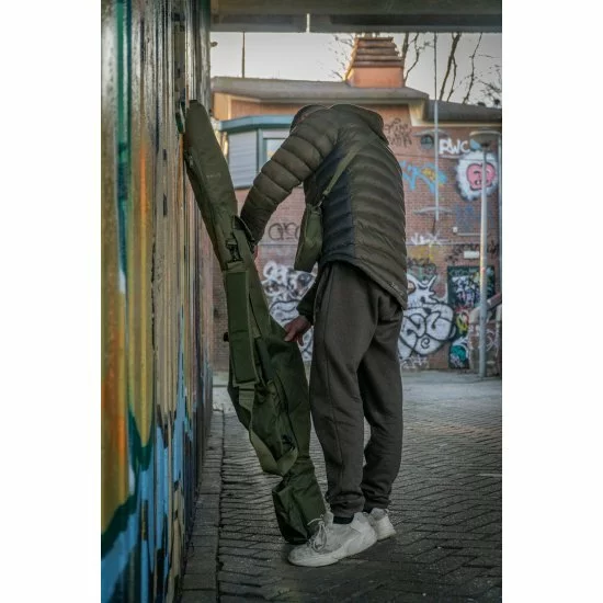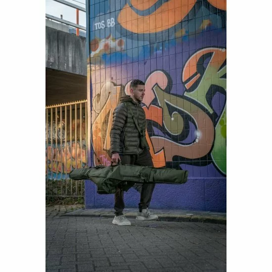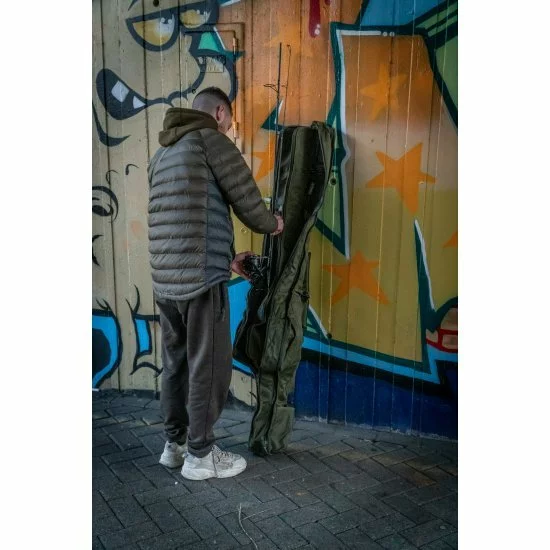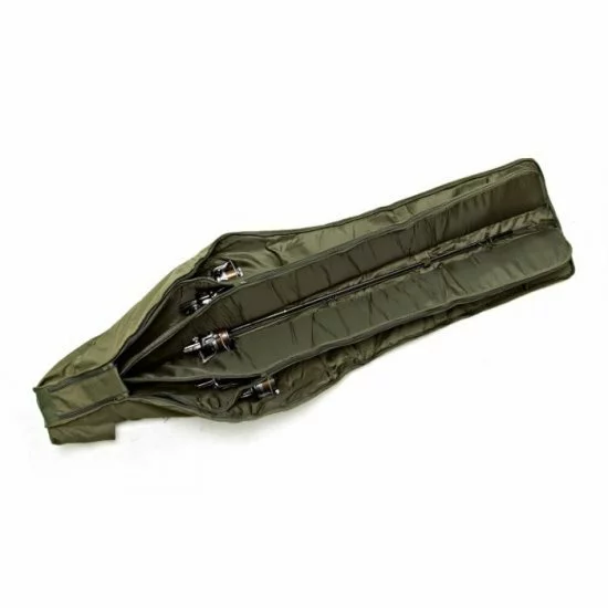 La funda acolchada para 5 cañas es una bolsa acolchada resistente que puede contener 5 cañas confeccionadas de 12 pies con guías de inicio de 50 mm y carretes Big pit.