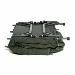 La cama Trakker RLX Flat-6 es la mejor cama de su clase con un peso de solo 7,5 kg. Esta cama es la favorita de los pescadores a los que les gusta moverse y no quieren cargar demasiado peso. El bajo peso no ha restado valor a la comodidad de esta cama. Otra gran ventaja de estas camas Flat-6 es que puedes dejar el saco de dormir encima durante el transporte, incluso los sacos de dormir de invierno más gruesos caben fácilmente entre ellos. La cama en sí es 100 % plana y el diseño de 6 patas garantiza la máxima estabilidad.