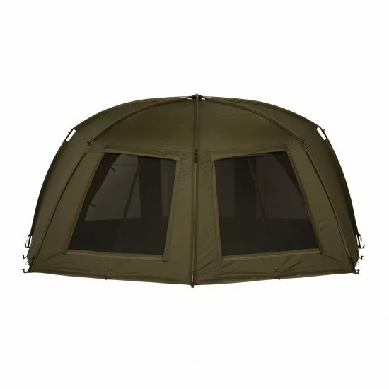 AquatexxEV Tempests tiene un hermoso diseño, combinado con los mejores materiales y componentes para brindar la mejor experiencia de pesca posible en todas las condiciones climáticas. El material Aquatexx EV tiene una columna de agua de 25.000 mm, la más alta de todas las tiendas de pesca del mercado. El Tempest 200 AquatexxEV es un refugio de montaje rápido y de gran tamaño diseñado para acomodar cómodamente a dos pescadores con mucho espacio para todos sus aparejos. De hecho, hay tanto espacio que este refugio gigantesco puede acomodar tres camas anchas y queda mucho espacio. Alternativamente, el refugio se puede utilizar como un centro social, amueblado con una mesa grande, cuatro sillas, además de un par de neveras portátiles grandes y un montón de bolsas adicionales que podría necesitar para su comida durante una sesión de una semana. El frente del refugio se puede quitar por completo para obtener la máxima visibilidad, o puede abrir las tres rejillas de ventilación delanteras y las dos rejillas de ventilación traseras y laterales de gran tamaño para optimizar la ventilación. Puede expandir aún más este refugio agregando un Skull Cap o una Cápsula interna (ambos se venden por separado).