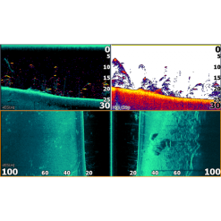 ¿Qué hace que este medidor de profundidad sea tan genial y por qué debería elegir el transductor Tripleshot de 7 pulgadas? El gancho revelador está disponible en 3 tamaños, 5, 7 y 9 pulgadas. En las 2 variantes más grandes (7 y 9) tiene la opción de conectar un transductor TripleShot, que se incluye con este conjunto como estándar . El transductor TripleShot es unas decenas de euros más caro que el transductor normal, pero es absolutamente imprescindible porque también tiene imágenes SideScan además de Sonar y DownScan, que le permite ver hasta 120 m a la izquierda y a la derecha del transductor. Ideal para mapear rápidamente un agua. Además de las imágenes nítidas, este indicador de profundidad también tiene una función de mapeo, que es única para un indicador de profundidad en este rango de precios y le brindará muchos peces adicionales.