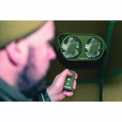 Haz que la pesca en condiciones cálidas sea más llevadera con este innovador ventilador vivac. El ventilador doble se puede colocar en cualquier lugar de su refugio gracias a la placa de montaje magnética. Además, los ventiladores pueden funcionar individualmente o simultáneamente a tres velocidades y pueden controlarse desde la unidad principal o usando el control remoto incluido. Esto asegura una circulación óptima a través de su bivvy, no solo proporcionando un flujo de aire muy necesario, sino también haciendo que su refugio sea menos atractivo para los mosquitos.